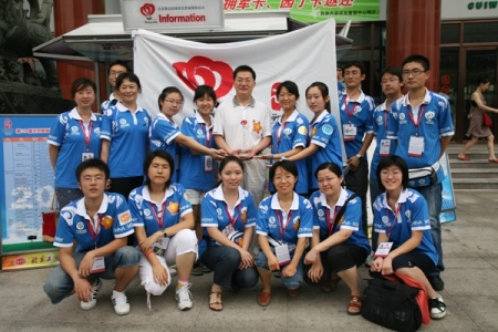 8月7日上午,李朝鮮副校長在團委副書記陶偉的陪同下,慰問了化工學院城市志愿者所在的中央電視塔服務站點和會計學院城市志愿者所在的城鄉貿易中心和翠微大廈服務站點的志愿者。