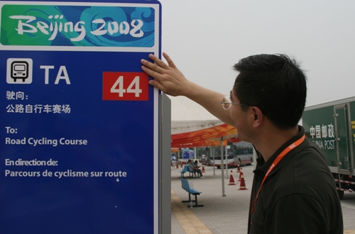 經過近一周的協調和準備,我校奧運村志愿者的建議得到了奧運村上級領導的高度肯定,目前,我校志愿者提出的三項建議完全得到了落實,所申請的站位號標示牌已全部制作完成。8月6日,班車站喜迎第一批標示牌。剛粘貼好的指示牌鮮艷的標識在陽光下顯得格外醒目,成為了班車站一道亮麗的風景。同時,受站位號標示牌的啟示,我校奧運村志愿者建議的74條公交線路的分區箭頭也矗立在運動員班車站的入口,運動員班車站的大門口一塊標有奧運村運動員班車站的大表示牌也于近日到位。這樣,運動員們看到醒目的標示完全可以方便地尋找車輛,在停車場工作的志愿者也表示這個小小的標志大大減輕了他們的工作負擔。