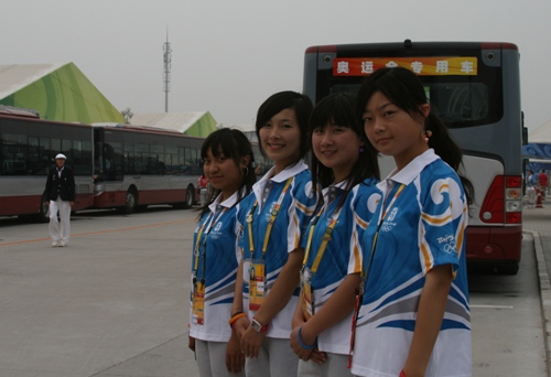據運動員班車站志愿者王新夢介紹,班車站承擔著從奧運村發向國家體育場的班車調度。為了保證開幕式的正式舉辦,在半小時以內要發送三百輛班車,任務繁重,前所未有,但是所有志愿者都很有信心,并已經做好了最充分的準備,保證萬無一失。