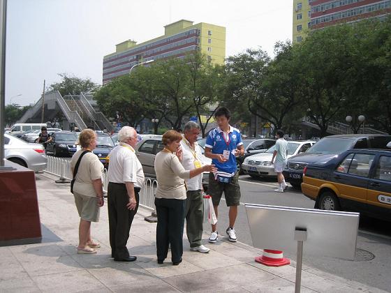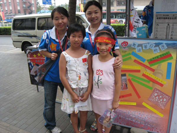 在這段服務(wù)奧運(yùn)的日子里,身為志愿者的我們感受到了太多的關(guān)愛與支持!時(shí)常會(huì)有路人把自己的地圖送給我們的站點(diǎn),方便我們?yōu)楦嗟挠讶朔?wù);時(shí)常會(huì)有住在附近的朋友每天下班后都過來與我們聊天,幫我們一起解決問題;更忘不了年過7旬的老爺爺過來和我們一起唱《朋友》,也忘不了可愛的小朋友每天在公交車站等車時(shí)都來我們站點(diǎn)的愛心貼板上留言,還有為我們提供幫助的同學(xué)——把自己唯一一套央視國際的轉(zhuǎn)播計(jì)劃和場館地圖等送給了我們服務(wù)的站點(diǎn)等等等等。