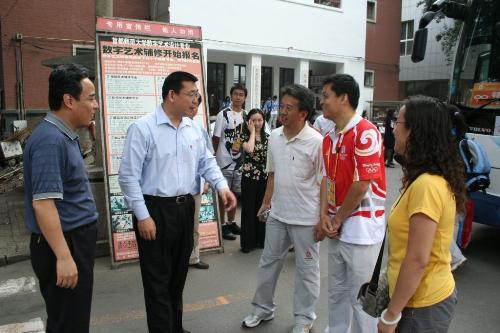 韓寶龍一行還慰問了正在工作一線的我校在北京奧組委志愿者部招募處擔任副處長的張曉磊,張曉磊在奧組委工作已1年有余,他感謝學校一直以來對他工作的關心和支持。在現場,我們見到了也正在工作的團市委書記、志愿者部部長劉劍同志和志愿者部副部長李世新同志,劉劍部長對張曉磊老師在奧運期間的工作高度贊揚,感謝工商大學派出這么優秀的老師參與奧運會的工作,也表揚了學校對奧運志愿者的人文關懷必將對他們做好后面的工作產生積極的激勵作用。