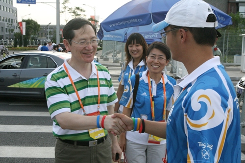 張耘副校長了解到奧運村帶隊老師的孩子都很小,家庭顧慮多,卻不搞特殊,與志愿者一起輪班站崗盡職盡責非常感動,并希望能夠通過優秀的事跡來感染其他志愿者、服務生。