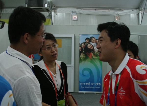 呂素香等來到了殘奧村綜合診所和國奧中心看望了我校在崗志愿者,并就地召開了殘奧村帶隊老師碰頭會,總結了奧運村前段時間的工作成果,指出了工作中的不足,要求帶隊老師進一步統一思想,明確職責,勇于奉獻,加強團隊合作,做好志愿者的組織管理工作。