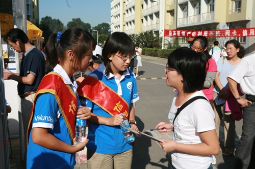 早上7點(diǎn)鐘,各部門和各學(xué)院準(zhǔn)備就緒。在生活區(qū)廣場設(shè)立了新生接待咨詢處以方便新生報(bào)到、找到新宿舍;校學(xué)生資助中心設(shè)立“綠色通道”幫助新同學(xué)辦理申請助學(xué)金和貸款的有關(guān)手續(xù);校學(xué)生會、校青志協(xié)、各院學(xué)生會和青志協(xié)專門安排學(xué)生引導(dǎo)員幫助新生及家長了解學(xué)校、搬運(yùn)行李,從校門口到新生宿舍,實(shí)行“一條龍”服務(wù);校財(cái)務(wù)處、教務(wù)處招生辦、學(xué)生處、保衛(wèi)處設(shè)立了咨詢處。學(xué)校各部門分工合理,新生接待工作井然有序,安排到位,贏得了新生及家長的好評。