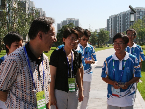 在居住區(qū)的超級居民服務中心,謝志華還看望了從交通業(yè)務口調(diào)到安保業(yè)務口的5名研究生志愿者。在所有服務崗位中,他們的工作條件最艱苦,謝志華希望這些研究生志愿者們能夠在艱苦的崗位上克服困難,在工作中磨練自己的意志,起到帶頭作用。得知志愿者吳韜在中秋節(jié)那天將要在殘奧村工作24小時,謝志華將月餅送給吳韜時說月餅代表了他的心意,并表揚他奉獻殘奧犧牲節(jié)假日的精神。最后,謝志華一行還看望了在三號門站崗的研究生志愿者唐楊斌,領(lǐng)導們對從奧運會期間一直在室外崗口服務的唐楊斌給予了高度評價,表示從他的身上能夠看到志愿者樂觀、堅持的高貴品質(zhì)。