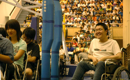 來自計算機學院2005級的王松同學代表我校北京奧運會、殘奧會志愿者和全體學生對2008級新生到來表示最熱烈的歡迎。他祝愿新同學們能盡快適應大學生活,抓住手中的每一寸時光,把握好人生的羅盤,在知識的海洋中揚起希望的風帆,朝向理想的彼岸破浪前行。
