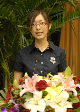 來自商學院的新生方宇迪代表2008級學生發言。她表示將會珍惜在北京工商大學的每一寸光陰,努力學習,報效父母,報效母校、報效祖國。