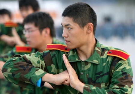 截至10月15日,我校08級新生進行了近兩周的軍訓。訓練期間,同學們紀律嚴明、訓練有素;承訓部隊官兵對同學嚴格要求、關愛有加;帶隊老師盡職盡責、敬業奉獻;軍訓團加強軍訓管理,增強人文關懷。目前,軍訓團師生正滿懷熱情刻苦訓練,等待閱兵式的到來接受學校對他們軍訓成績的檢驗。
