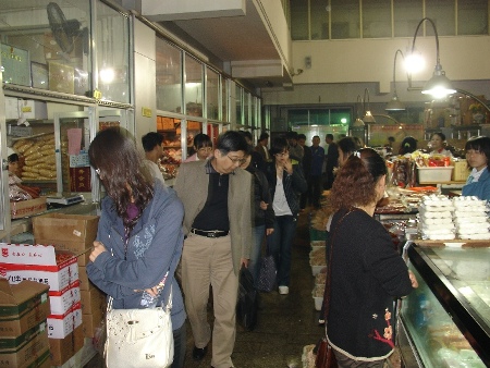 17日晚11點,師生們在杜經理的陪同下,現場考察了批發市場的豬肉大宗交易;18日凌晨4點至5點半,師生們在趙經理的陪同下,先后考察了特色蔬菜交易大廳、進口水果交易大廳、肉類交易大廳和綜合交易大廳等地。盡管考察時迎面吹來陣陣寒風,師生們還是饒有興致地詳察細問,有的還親自做了一次交易,購買了蔬菜、水果等產品。調研中,師生們都為這繁忙、壯觀的農產品交易情景所吸引和感嘆。與一年前相比,現在的新發地農產品批發市場不僅擴大了交易場地、細分了交易內容,而且交易設施和交易環境得到了明顯改善,連鎖配送交易方式的比重有所提高。