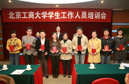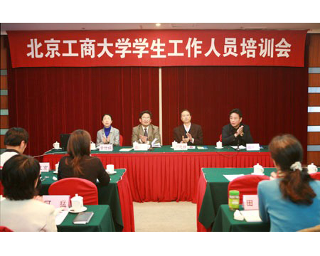 10月30日至11月1日,學校在北京天湖國際會議中心舉辦了“北京工商大學學生工作人員培訓班”。校領導譚向勇、盧思鋒、張德玉,中國農業大學黨委副書記秦世成、北京科技大學學生處處長何進,人事處處長魏中龍、商學院院長何明珂為培訓班作了專題報告。校領導盧思鋒、張德玉,人事處處長魏中龍、學生處處長董竹娟出席了培訓班開班式。盧思鋒、魏中龍、董竹娟、呂素香出席了培訓班結業式。