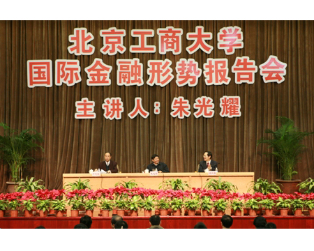 11月5日下午,財政部部長助理朱光耀應邀到我校做題為“國際金融危機的起源、特點、影響及對策”報告。校長譚向勇向朱光耀部長助理頒發了兼職教授聘書。學校黨委理論中心組成員、全體中層干部和師生代表參加了報告會。報告會由黨委副書記盧思鋒主持,許多師生聞訊也趕到會場聆聽報告,會場氣氛熱烈。