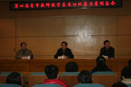 孫寶國副校長強(qiáng)調(diào)了學(xué)校領(lǐng)導(dǎo)對本屆青年教師教學(xué)基本功比賽的高度重視,肯定了各教學(xué)單位預(yù)賽所取得的成果,表揚(yáng)了入圍決賽選手在預(yù)賽中的優(yōu)異表現(xiàn),對主辦單位的前期籌備和決賽安排表示了認(rèn)可。同時(shí),他還提出了幾點(diǎn)希望和要求:一是主辦單位要精心設(shè)計(jì)、周密布置,各基層工會要密切配合,相關(guān)職能部門要大力支持,評委們要公平、公正,以確保決賽的順利舉行和質(zhì)量、水平。二是各學(xué)院領(lǐng)導(dǎo)要高度重視決賽,督促和幫助參賽選手做好賽前的準(zhǔn)備工作,盡可能為選手提供方便;要認(rèn)真組織好本單位的教師尤其是青年教師到現(xiàn)場觀摩,基層工會主席和分管教學(xué)的副院長要親自到比賽現(xiàn)場;賽后要組織教師特別是青年教師總結(jié)、座談和交流。三是希望參賽選手在決賽中以最佳的狀態(tài)、以教學(xué)技術(shù)和授課藝術(shù)的完美結(jié)合,充分展現(xiàn)我校青年教師的教學(xué)水平。孫副校長還向參賽選手們傳授了避免失分的秘訣,同時(shí)建議有關(guān)部門在職稱評定時(shí)認(rèn)可北京市高校青年教師基本功比賽中所獲獎(jiǎng)項(xiàng),創(chuàng)造條件讓評比出來的最優(yōu)秀的選手給其他青年教師現(xiàn)場授課,并加大對他們的宣傳力度,以起到示范和帶動作用。