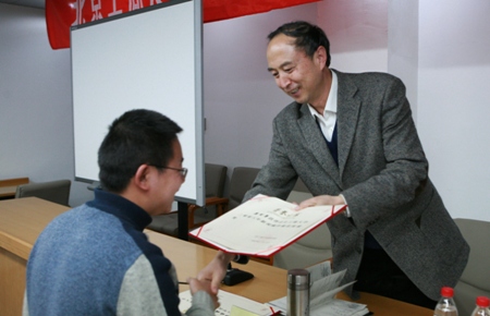最后,黨委副書記盧思鋒發表了熱情洋溢的講話。他用“三好”、“三提升”高度概括了過去一年學校新聞宣傳工作的成績和特點。即:工作狀態好,新聞稿件數量質量都有提升;通訊員工作好,選題策劃能力水平有提升;學校新聞宣傳工作總體效果比較好,社會媒體關注度有提升。同時,盧思鋒副書記也對學校新聞宣傳工作和通訊員隊伍建設提出了明確要求:第一,提高認識,加強學習,關注國家大事、首都大事、學校大事,開闊視野,提高從全局把握新聞點的能力;第二,提高新聞宣傳工作的質量和水平;第三,大力支持院系新聞宣傳工作,充分反映學校院系調整后學科整合建設的進展與成績,積極關注畢業生就業工作。他還特別強調:和著新中國成立60周年的腳步,北京工商大學即將迎來校慶60周年的歷史時刻,我們要以飽滿的熱情、積極的工作狀態作好本職工作,當好學校事業發展的歷史見證人、記錄者和宣傳員。