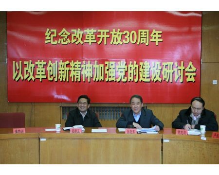 9、今年是改革開放30周年。學校各單位以各種形式動紀念改革開放30周年,做到回顧光輝歷程,總結成功經驗,促進科學發展。12月19日,學校黨委召開“紀念改革開放30周年,以改革創新精神加強黨的建設”研討會。黨委書記孫堯東要求以改革創新精神加強黨的建設。