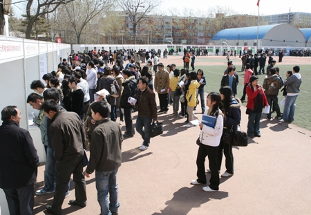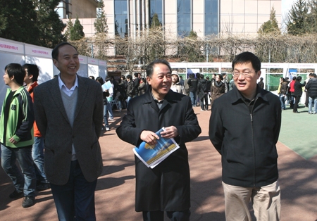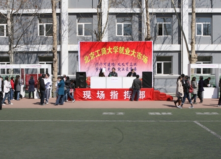 3月31日上午陽光明媚,北京工商大學阜成路東區操場熙熙攘攘,場面熱烈,我校面對09屆畢業生的春季第三場大型雙選會在這里舉辦。來自各行各業的200家用人單位應邀來到雙選會現場,為我校畢業生提供了3700個職位,雙選會規模達到我校歷史之最。我校近三千名應屆畢業生積極參加面試、投遞簡歷并參加就業咨詢,現場火爆。校黨委書記孫堯東、校長譚向勇、校黨委副書記盧思鋒、副校長謝志華、副校長李朝鮮等校領導親臨現場指導工作。