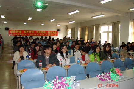 2月27日 ,“2009年研究生寒假社會實踐匯報會”在我校阜成路西校區舉行,研究生部主任何明珂、副書記熊慧,法學院副院長劉東超,校關工委委員郭新元作為特邀嘉賓出席了匯報會。