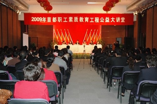 近日,由首都職工素質教育工程辦公室與北京市總工會服務業工委共同主辦的公益性大講堂正式開講,標志著2009年素質教育工程工藝大講堂活動正式拉開帷幕。作為一名普通的共產黨員,商學院蘭苓教授把學習實踐科學發展觀落到實處,積極參與在開幕當天進行專題講座,并取得了很好反響。公益性大講堂是一個以商業服務業小教員、班組長、技術骨干為主要培訓對象,以“金融危機對商業運行的挑戰和契機”為主題,旨在帶動全市商業服務業企業正確面對國際金融危機的影響,共同抓住機遇,迎接挑戰的公益性講堂。