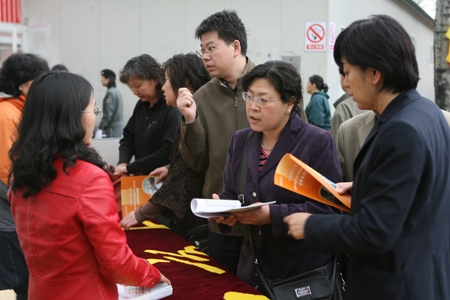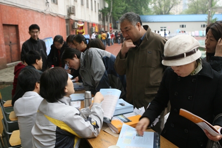 我校各大院系咨詢臺前的咨詢者絡(luò)繹不絕,兄弟院校的臺前也是熱鬧非凡。中國農(nóng)業(yè)大學(xué)的一位咨詢老師:“家長和學(xué)生基本都是從分?jǐn)?shù)線,就業(yè)方向,畢業(yè)去向,費用等方面進(jìn)行咨詢,其中也不乏關(guān)心出國留學(xué)的咨詢者。”