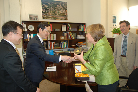 在到訪考克大學之前,譚向勇校長一行還訪問了西班牙巴塞羅那自治大學和意大利羅馬第二大學。在巴塞羅那自治大學,譚向勇校長會見了該大學校長Ana Ripoll Aracil教授和主管國際合作的副校長Mercedes Unzeta教授,雙方就擴大校際合作深入交換了意見,共同表示愿意繼續深化現有的博士合作項目,并積極開拓師生交流和合作研究項目。譚向勇校長一行還重點考察了該校教學運行、行政管理、后勤服務、基礎建設等方面的內容,并與在該校攻讀博士學位的我校學生進行了座談。