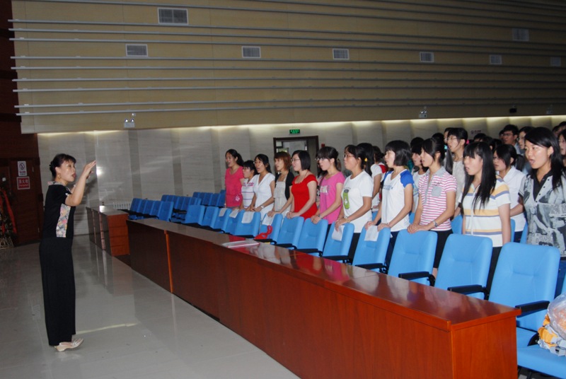 合唱隊姜華老師一直在學校擔任校合唱隊的訓練工作,這次參與國慶合唱的隊員,每一名都是由姜華老師精挑細選出來的。說到這些,姜華很嚴肅地說道:“為了能保證合唱的質量,再苦再累也是值得的。”在國慶合唱隊的訓練過程中,她一直精神抖擻地站在隊員面前,并不時地為隊員們打著節拍。然而,細心的人會發現。姜華老師經常會用一只手輕捶著自己的腰。“腰很疼,但還是得堅持著。因為要為學生做出榜樣。”姜華老師如是說,“老師首先不能有松松垮垮的精神面貌,要用自己的精神來帶動學生”。在談及學生的訓練程度時,她很欣慰地笑了,“總體的程度還是比較不錯的,我們的學生能夠到達現在的程度非常不容易。”當說到最想送給在訓學生的話時,姜華老師略微沉吟了一下。“最想送給同學們的,是我的一個愿景,希望我們北京工商大學的師生共同努力,為國慶獻出自己最大的一份力量!”