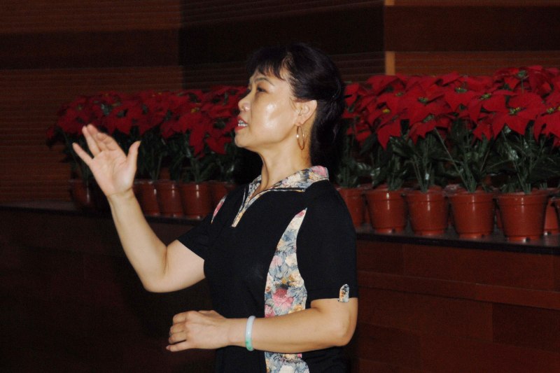在國慶合唱訓練中,若問誰是最可愛的人,大家的腦海中最先浮現出的,就是指導老師的身影。在合唱隊的訓練地,我見到了此次國慶合唱隊的指導教師——學生處副處長徐紅京老師以及合唱隊姜華老師。