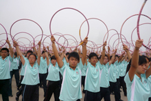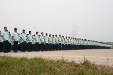 時值13:00,我校全體參訓人員頂著炎炎烈日,整裝待發,在整個方陣中不僅表現得十分出色,而且我校方隊身處方陣較前位置,擔當重任,起到了很好的帶頭作用。在合練中,我校參訓人員以飽滿的精神面貌、高昂的氣勢,充分的把我校學生艱苦訓練、不怕吃苦的精神展現給了檢閱領導和在場的所有參訓人員。全體參訓人員統一服裝,淡淡的藍色給酷熱的天氣帶來了一絲絲涼意,在花環表演區,排面整齊、花環動作統一,踏樂準確、協調,口號洪亮,進入疏散區后,我校參訓人員服從指揮,迅速有序的退離合練場地。整齊的步伐、準確的動作,激昂的熱情帶動了整個訓練氣氛,激勵了全體人員,獲得在場領導的一致好評。