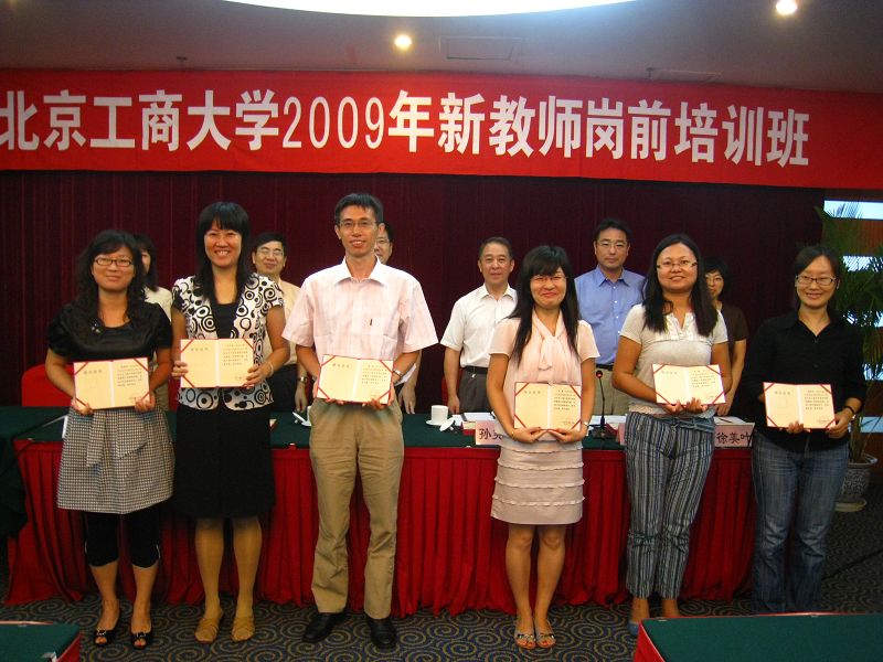 由學校人事處、教務處和科學技術處聯合主辦的“北京工商大學2009年新教師崗前培訓班”于8月27日至29日在北京天湖會議中心舉行,49名新教師參加了培訓。校領導譚向勇、李朝鮮出席了培訓班開班式,孫堯東出席了培訓班結業式,張德玉、孫寶國、李朝鮮在培訓班分別作了專題報告。人事處處長魏中龍、教務處處長張曉堂、科學技術處長王國順、研究生部主任何明珂、學生處處長呂素香、北京市哲學社會科學規劃辦公室副主任李建平也分別作了報告。青年教師劉新亮、張慶龍、胡蓉分別作了講座和教學演示。