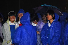 10月1日凌晨2點,迎著微微細雨,北京工商大學首都國慶群眾游行“艱苦創業”方隊踏上了去往天安門的征途。黨委副書記盧思鋒激動地說:“我們將盡我們最大的努力圓滿地完成這項祖國交給的光榮任務任務,為祖國六十華誕獻禮!”。