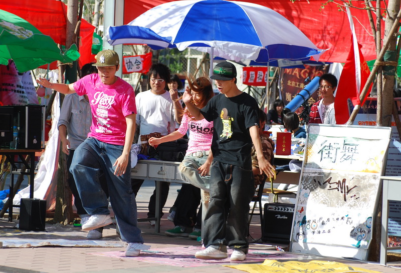 很多社團為了更好的展示本社的特色,在招新現場就擺開了陣勢:排球社掂起了排球,傳統文化社穿上了中國傳統的服裝擺上了古香古色的字畫,第三武道社耍起了雙節棍,吉他社音樂不斷,街舞社舞蹈不停;有的社團擺上了榮譽獎狀、證書展示自我的風采;各社團不放過任何可利用的資源:定向越野社在地上貼上了指引,潛能開發協會在社團指引牌旁貼上告示……