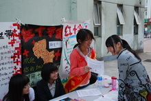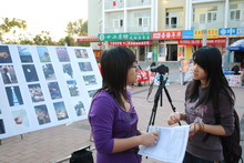 在招新現場,記者發現每個社團都使盡渾身解數,吸引同學的注意力。有的社團舉行了多姿多彩的活動,如,聯誼協會的抽獎活動,毽繩協會、花藝社向新社員贈送小禮品的活動;有的社團則注重視覺聽覺的吸引:新聞實踐社、潛能開發社用Photoshop制作的海報,旅游協會的一直播放著音樂的音箱,微軟創新實驗室的屏幕播放著電影。