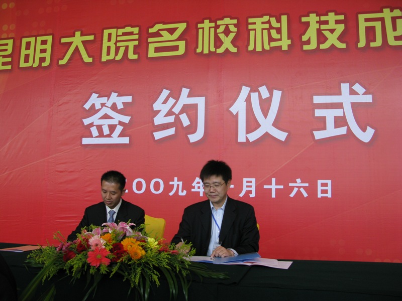 我校作為特邀單位參加了本次成果展示交易會,展示了我校近年來的科研成果。經過成果展示、項目洽談,我校在展示會期間傳出捷報,就藥妝產學研與云南白藥集團公司舉行了隆重的長期合作簽約儀式,簽約儀式由云南省科技廳主持,我校科技處王國順處長代表我校與云南白藥集團公司常務副總經理黃衛東簽訂了合作協議。云南白藥集團公司常務副總經理黃衛東在儀式上指出,云南白藥集團公司正處于大力推進研發和擴大產業鏈的雙重機遇,為了中國藥妝產業的發展,云南白藥熱切期盼與我校合作的順利進行。化學與環境工程學院董銀卯教授及科技處相關工作人員參加了合作儀式。
