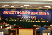 來自全國各地的80多位高等院校、研究機構的金融界理論專家、實務工作者共同探討如何構建一個合理的金融政策框架,以保持我國經濟持續快速增長等金融熱點問題。著名的金融專家、中國金融學會副會長、人民銀行金融研究所名譽所長趙海寬教授出席會議并發表了熱情洋溢的講話。來自廈門大學的張亦春教授、遼寧大學的白欽先教授、中國銀行王元龍研究員、對外經貿大學的吳軍教授和丁志杰教授、中國社會科學院的何德旭教授、中央財經大學賀強教授、以及北京市金融學會副會長姜再勇博士、華融資產管理公司賴小民董事長、農業發展銀行北京分行陳小強副行長等人發表了精彩演講,我校濟學院金融系楊德勇教授、栗書茵教授、葛紅玲教授、張正平副教授、張偉博士圍繞主題進行了演講,各位業內人士進行了坦誠而有建設性的討論,氣氛熱烈而和諧。眾多學者指出:目前經濟復蘇的基礎并不穩固,確保經濟持續復蘇、鞏固經濟復蘇成果是當前政策的一個最重要的目標。我們應該根據我們的國情,抓著機遇,大力推進金融政策對產業結構的轉型升級、拉動內需、緩解風險的作用,鞏固經濟復蘇成果,搶占后危機時代經濟發展“制高點”。