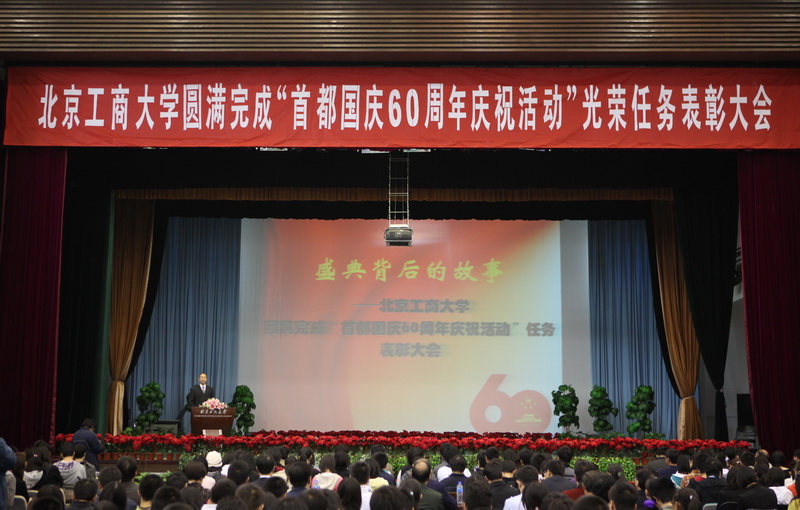 一百天的艱苦訓練,二百三十八步的完美表演,成就了69秒的輝煌。10月21日,以“盛典背后的故事”為主題,北京工商大學圓滿完成“首都國慶60周年慶祝活動”光榮任務表彰大會在良鄉校區文體館舉行。校領導孫堯東、李朝鮮、王尚忠出席了大會。黨委副書記盧思鋒主持了大會。