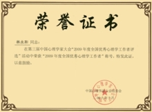 近日,由中國科學(xué)院心理研究所主辦的中國心理學(xué)家大會在北京人民大會堂隆重開幕。在此次大會上,我校林永和教授榮獲"2009年度全國優(yōu)秀心理學(xué)工作者"稱號,我校北京高校學(xué)生心理素質(zhì)教育工作研究中心榮獲"2009年度全國優(yōu)秀心理健康服務(wù)(教育)機(jī)構(gòu)"稱號。在人民大會堂,全國人大常委會副委員長王文元及有關(guān)領(lǐng)導(dǎo)與大會代表合影留念,并為全國優(yōu)秀心理健康服務(wù)(教育)機(jī)構(gòu)和全國優(yōu)秀心理學(xué)工作者隆重頒獎。