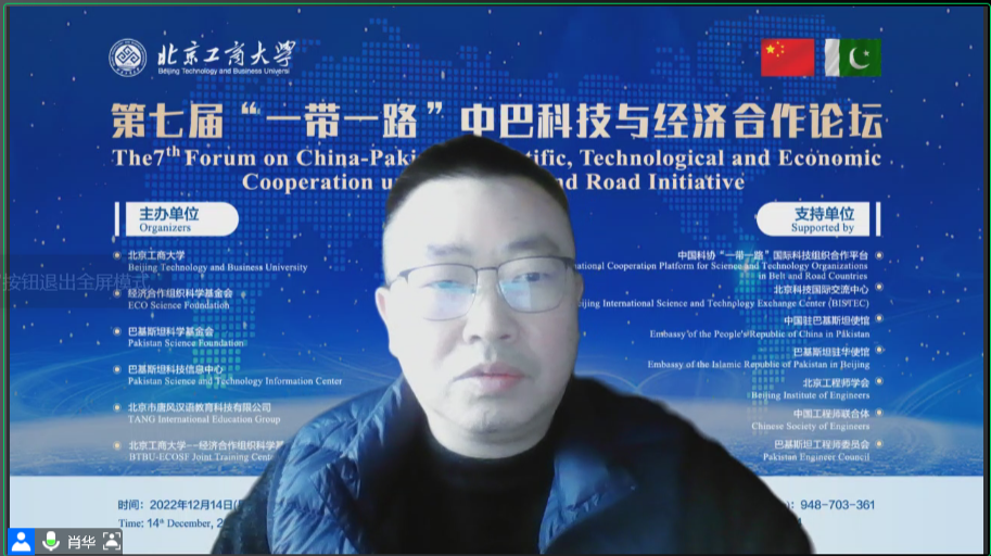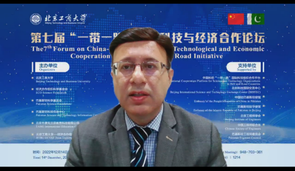 12月14日,在中國科學技術協(xié)會國際合作部、北京市科學技術協(xié)會、中國駐巴基斯坦大使館、巴基斯坦駐華大使館等單位的大力支持下,我校聯(lián)合經濟合作組織科學基金會、巴基斯坦科技與經濟及研究中心、唐風國際教育集團、北京環(huán)球英才交流促進會等單位共同舉辦了第七屆“一帶一路”中巴科技與經濟合作論壇。校黨委常委、副校長劉敏華,中國科協(xié)國際合作部一級巡視員王慶林,北京市科協(xié)黨組成員、副主席、一級巡視員田文,聯(lián)合國教科文組織駐華代表處主任夏澤翰,巴基斯坦經濟合作組織科學基金會主席薩義德 ? 科邁爾 ? 塔耶比,巴基斯坦科技信息中心主任阿卡姆·謝赫,巴基斯坦科技部國際合作司副司長汗 ? 穆罕穆德 ? 瓦澤等出席了會議。會議由國際經管學院黨委書記郭毅,我校名譽教授曼佐爾·侯賽因·索洛,巴基斯科技與經濟研究中心執(zhí)行主任邸玉娜,數(shù)字經濟系副主任韓璐共同主持。