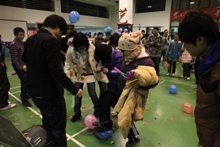 “彩燈亮閃閃,同學(xué)圈圈轉(zhuǎn)”,這是機(jī)械學(xué)院的“搶椅子”游戲。架子鼓也來助陣,熱鬧、歡快,那場面只能用一個詞形容:相當(dāng)火爆!這邊搶椅子,那邊倆人一組,一個人描述特征,一個人猜內(nèi)容。配合默契者眼神交換,喜悅滿面;稍微差點(diǎn)的,領(lǐng)了禮物趕緊奔赴下一個“戰(zhàn)場”。