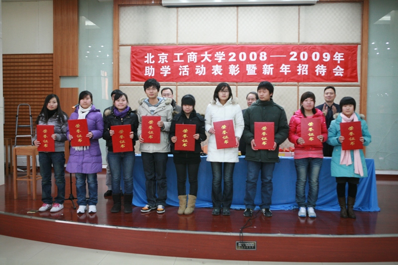 12月31日,學校在良鄉校區舉行2008-2009學年助學活動表彰暨新年招待會。學校黨委書記孫堯東、黨委副書記盧思鋒出席會議并為獲得先進集體、先進個人榮譽稱號的學生集體和個人頒發了榮譽證書,向參加會議的經濟困難學生贈送了節日禮包。