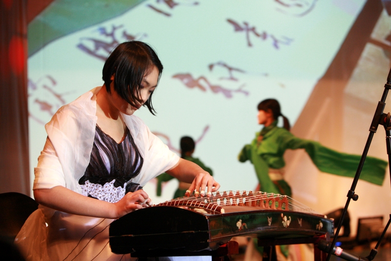 假如在你的印象里“90后”仍是“非主流”、“頹靡一代”的代言人,那么,你“Out”了。由法學09級大一學生自編自演的集古箏、書法、舞蹈為一體的《雪山春曉》以獨特的藝術形式展現了中華民族古典文化的恒久魅力,也再次向觀眾展示了“90后”青春、勃發的精神面貌和優雅情懷。法學092的耿聞捷將古箏名曲《雪山春曉》演繹地淋漓盡致,而法學092的王奪同學更是健筆揮毫寫下了“舉國歡騰,同慶祖國六十華誕;辭舊迎新,喜迎學校甲子慶典”兩行大字。法學092段海霞等同學身著綠衣翩翩起舞,博得全場長久不息的掌聲。