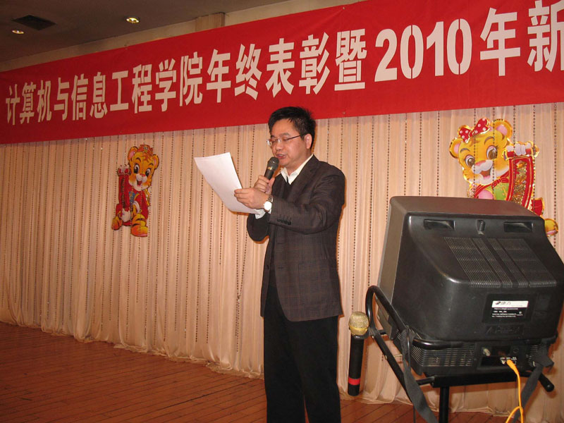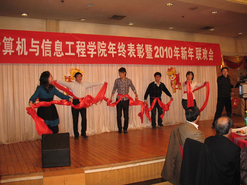 2009年12月30日,計算機與信息工程學院隆重召開2009年年終表彰暨2010年新年聯歡會。孫寶國副校長、李朝鮮副校長蒞臨大會向獲獎人員頒獎,并向大家表示親切慰問和熱烈祝賀。