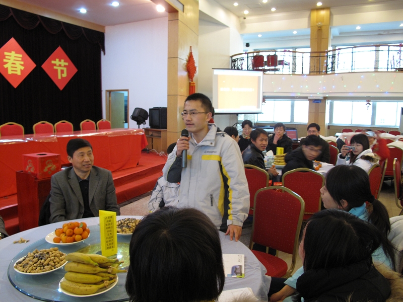 盧思鋒在致辭中代表黨委書記孫堯東、校長潭向勇向在校度假同學表示節日祝福,向仍然工作在第一線的同志表示節日的問候,他看到留校學生中有幾位參加過北京奧運會志愿服務和國慶60周年群眾游行活動的同學時高興的說道:希望同學們向參與北京奧運會、國慶60周年慶典活動一樣關心參與學校60周年校慶活動。祝同學們假期愉快!。呼文亮在隨后舉行的節日午宴上致祝酒辭,他祝愿全校師生虎年生活更加美好!