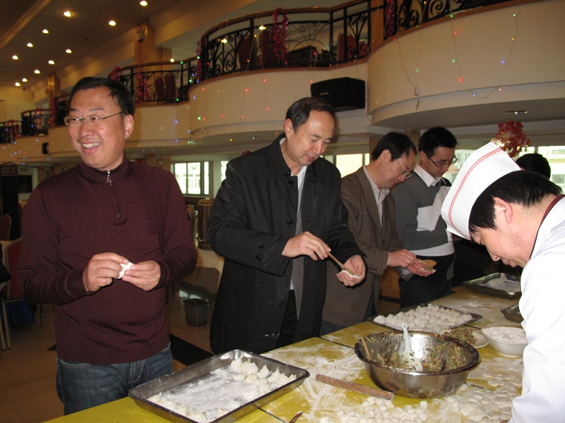 今天一早,盧思鋒、呼文亮專門來到學生餐廳與同學們一道準備年夜飯,他們一邊與同學們包餃子,一邊詢問同學們家在哪里,留校原因,節日期間如何安排。叮囑同學們一定要與家人聯系,外出活動時要特別注意安全。