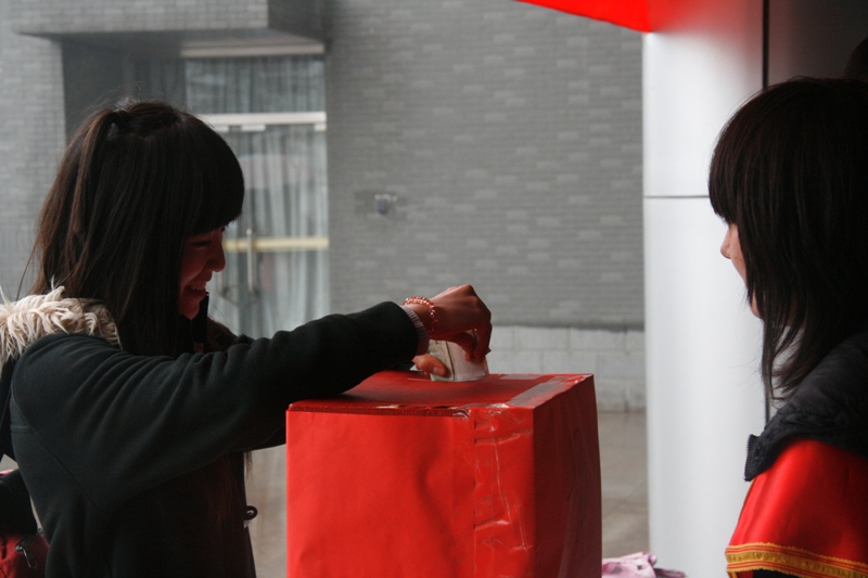 根據團中央的統一部署,3月30日中午,校團委組織開展了“一份愛心,一份鼓勵,工商學子向旱災地區捐獻一瓶水”活動,活動在良鄉校區和阜成路校區同時進行,細雨中,師生爭相捐款,情意濃濃。