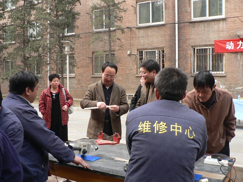 4月14日下午,后勤管理處動力維修科維修人員崗位技術練兵活動在阜成路校區舉行,副校長呼文亮出席了此次活動,后勤23名電工、水工、木工參加了技術演練。