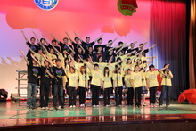 多才多藝的注會092班,舒緩的鋼琴演奏,悠揚的笛音,抑揚頓挫的詩歌朗誦讓大家不禁為之喝彩;工商092班漸變的節奏以及穿插在演唱中的的手語博得了陣陣掌聲;財務092穿透賽場的豪邁氣勢讓人為之震撼;工商095班大氣而恢弘的陣勢,獨特的領唱,高昂的激情得到了全場的認可。