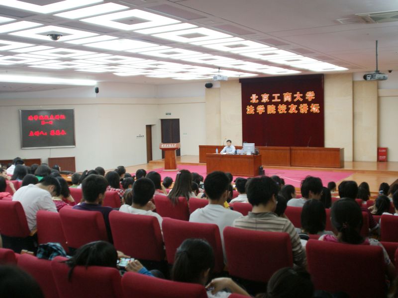 在主持人法學院(馬克思主義學院)黨總支副書記、學院校友分會常務副會長文四英簡要介紹并回放了2010年3月25日蔡院長一行參觀訪問北京工商大學的情況、蔡院長的簡歷及舉辦本次講壇的意義和目的后,法學院校友講壇正式開始。