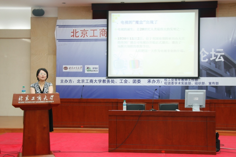 在論壇開始之前,尹老師為在座的同學(xué)們簡短地介紹了許莉老師,名牌大學(xué)的出身以及豐富的職場經(jīng)驗(yàn)不禁讓臺(tái)下的同學(xué)欽佩不已。許莉老師分別從電視媒介的誕生及發(fā)展歷程、受眾之所以熱愛電視的原因、新媒體帶來的新現(xiàn)象、媒介融合、電視的作用等幾個(gè)方面進(jìn)行了介紹和闡釋。許莉老師講到,無論是傳統(tǒng)媒體還是新興媒體,由于各種媒體都有各自的優(yōu)勢,所以傳統(tǒng)媒體不會(huì)被取代,只是有可能在不遠(yuǎn)的將來媒體之間將會(huì)互相融合,電信網(wǎng)、互聯(lián)網(wǎng)、數(shù)字電視網(wǎng)“三網(wǎng)的融合”將會(huì)給人類的生活帶來更大的便利,同時(shí)人們的生活將從“看”電視轉(zhuǎn)變?yōu)?ldquo;用”電視。傳統(tǒng)的擺在客廳的電視將同步完成上網(wǎng)購物、瀏覽信息、收看電視等多項(xiàng)服務(wù)。