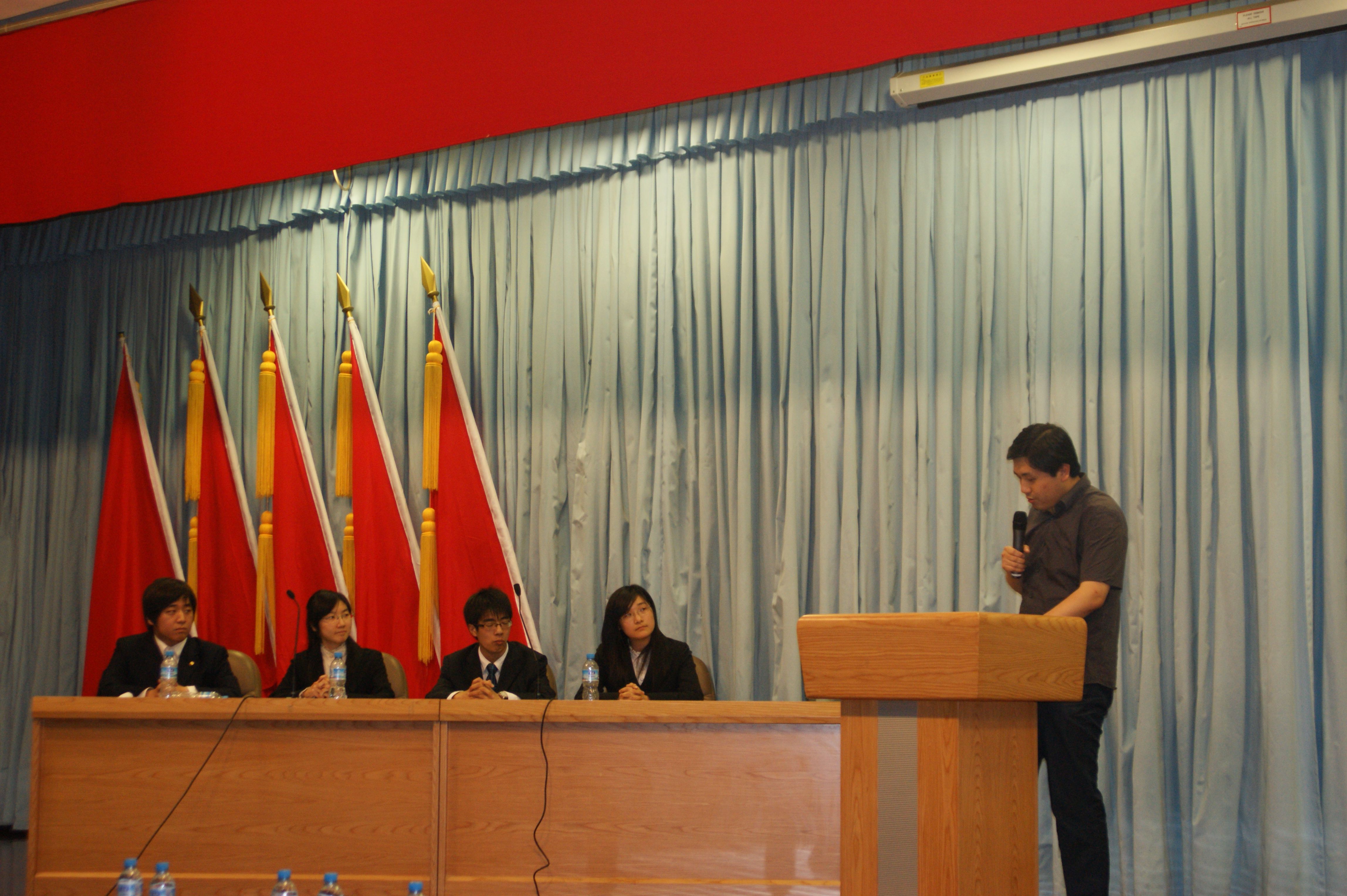本屆“春季杯”辯論賽以“慶六十年校慶,建綠色低碳校園”為主題,法學院辯論隊與經濟學院辯論隊過關斬將,最終殺入決賽。雙方此次辯論的話題是:就當今中國而言,法制健全與經濟發展誰更重要。法學院(正方代表隊)觀點是:就當今中國而言,法制健全更重要。經濟學院(反方代表隊)觀點是:就當今中國而言,經濟發展更重要。