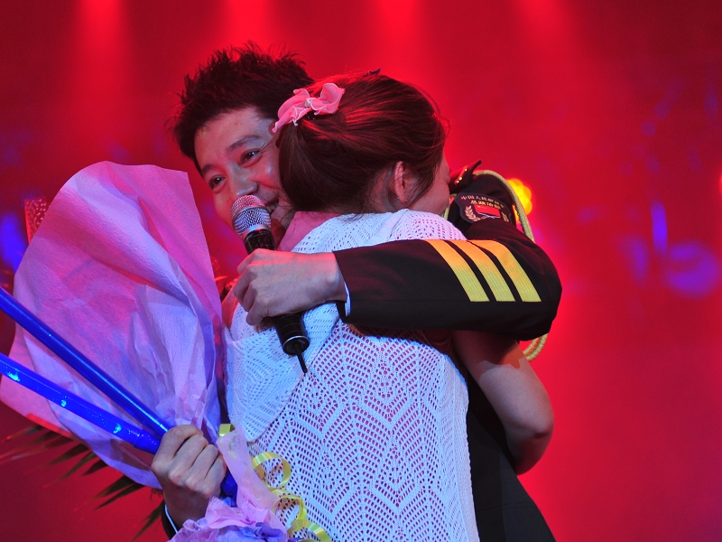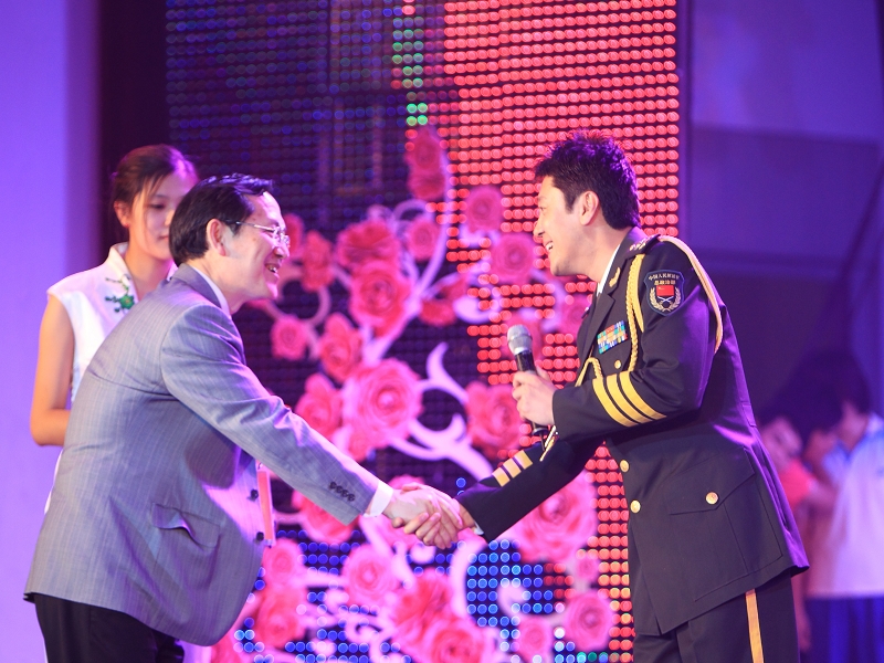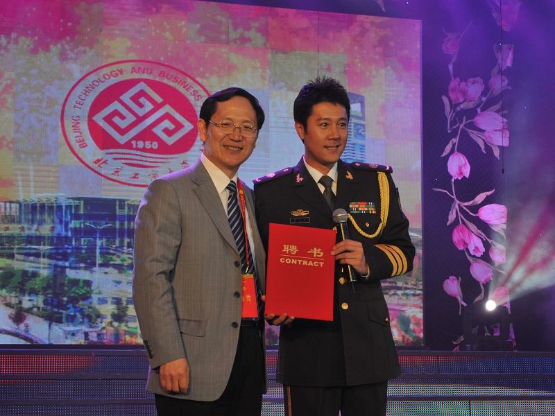 演出結束,校長譚向勇親自上臺向蔡國慶頒發了聘書,聘請蔡國慶為我校藝術團指導教師。在聽蔡國慶表示后悔沒當成工商大學的學生,校長笑言,不能讓蔡國慶當學生,否則其他的學生都不上課而去追星了,“所以,只能請你做工商大學的老師了。”