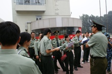 自昨日開訓以來,參訓學員在承訓部隊官兵的指導下,不僅在軍事訓練上積極對待、熱情高漲,在內務的整理上也表現出了軍人的風格。各連隊連長、班長、指導員以及全體學員都對本次評比給予了高度重視,昨日,教官和指導員親自前往學生宿舍指導并動員,參訓學員認真細致地進行了內務整理,同學們不顧訓練的勞累,訓練之后爭相回到宿舍整理內務,他們將一本本書整齊碼放,將平日隨便堆著的衣服一件件疊起,用抹布擦拭宿舍的每一個角落,經過幾個小時的努力,全團清理出了幾卡車垃圾,宿舍空間大了,床鋪整齊了,衛生死角得到了徹底的清理,看著煥然一新的宿舍,同學們高興地說笑著,互相鼓勵著,他們說:“我們把宿舍變成軍營了,搬家也方便多了,最好能一直這樣保持下去。”