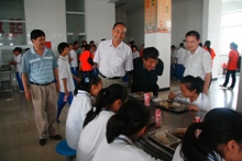 下午,慰問團馬不停蹄地趕到了北洛中學,看望了外國語學院實踐分團的師生。在參觀了宿舍和食堂之后,盧思鋒副書記向同學們了解了實踐活動進展情況以及生活情況,并表達了深切的關懷,他對同學們說:“你們已經用實際行動贏得了北洛中學校方的信任,在接下來的幾天中要繼續發揚成績,做好總結,注意安全。”